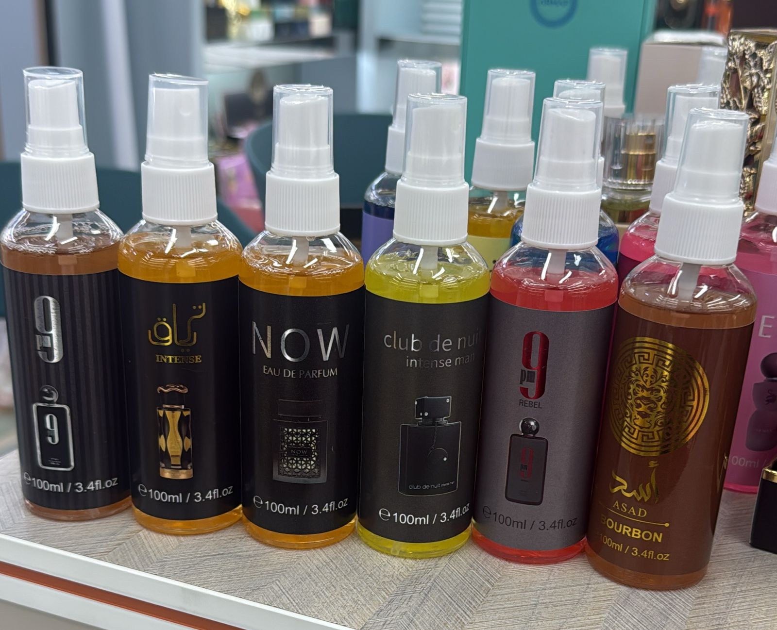 This set of 6 assorted men's body mists provides long-lasting scents for up to 8 hours. Each bottle contains a different fragrance, perfect for mixing and matching or finding your perfect scent. With each mist priced at 500 kes, this set offers great value for long-lasting scents.